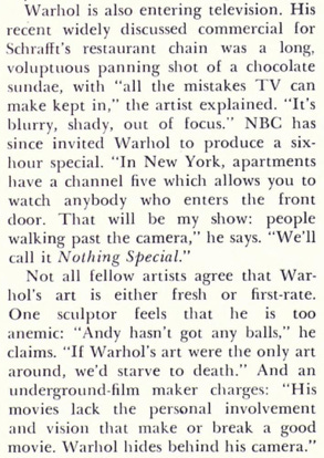 Does anyone know what to make of Andy Warhol? Did he? All I know is that he was out there making shit happen. Imagine a critic for the New York Times likening your work to that of James Joyce, while other said you had no balls.